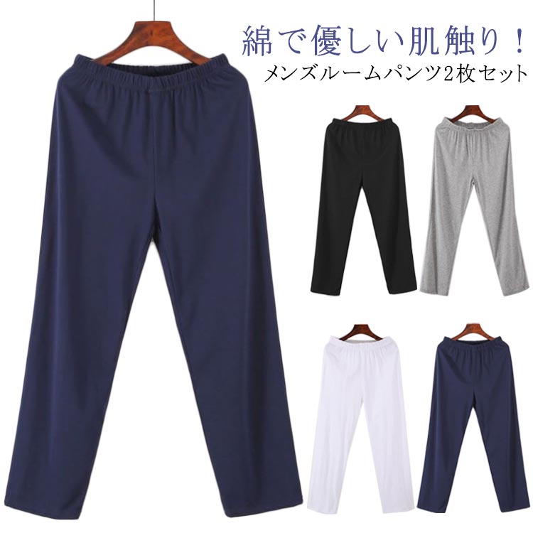 | 綿で優しい肌触り! メンズルームパンツ2枚セット サラリとした風合いの綿素材を使用。 吸湿性・通気性抜群、汗をかいてもサラリと快適。 ウエストが総ゴム仕様で、しめつけにくく窮屈感から解放されたひとときを リラックスムード漂うゆったりしたシルエット ルームウェアとしてはもちろん、お休みの時にもおすすめ | |