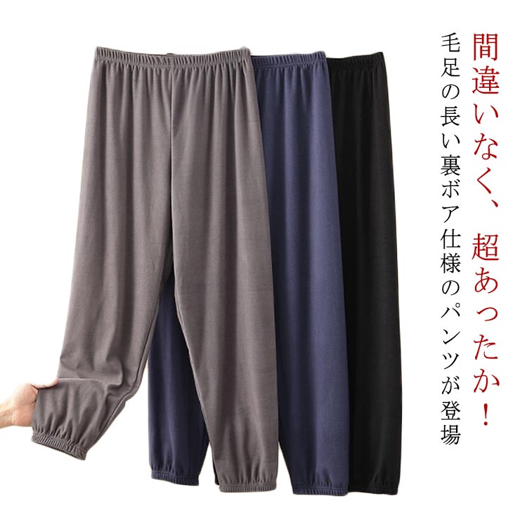 | 間違いなく、超あったか!毛足の長い裏ボア仕様のパンツが登場 肌触りが柔らかく、程よく肉感のあるスウェット素材を使用しております。 ウエストはゴム仕様でらっくらく!あったか裏ボアタイプは寒い冬も快適にあったかくお過ごしいただけます♪ ウエストゴムで部屋着やパジャマ、旅行先・機内でのリラックスウェアに最適。 裾ゴムタイプ。肌ざわりがよく癖になる着心地です | |