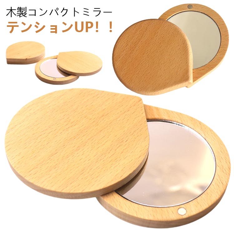 | 木製コンパクトミラー テンションUP!! 開閉部分マグネット式 取り外し可能ミラー | |