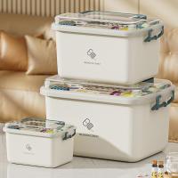 インテリアになじむシンプルなデザインの救急箱。 透明の蓋で何を入れたか一目で確認することが出来ます。 取り外せるトレー付きで、収納部が2段に分かれているので、使用頻度や種類によって分けて整理することが出来ます。 持ち運びに便利な持ち手つき。 持ち手収納時は上部がフラットになるので、棚などに入れる際も持ち手が当たったり、かさばらず省スペースで収納が出来ます! 薬以外にも工具、裁縫道具、お子様のおもちゃや文房具の収納など、さまざまな使い方が出来ます。 両サイドにロック付き。万が一、落としてしまった際も中身の飛び出しを防ぎます。 | |