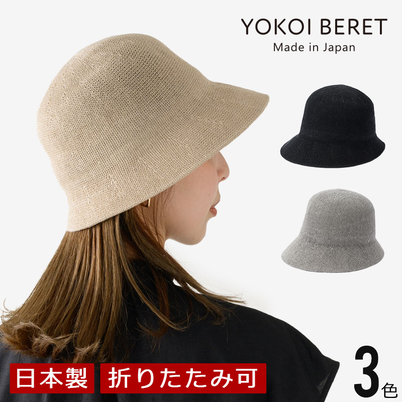 また、この商品は編んだ帽子を型に入れ、熱を加えることでポリエステルの繊維が固まり帽子の形になるサーモと呼ばれる帽子です。サーモの最大の特長は、しっかりとした形状を保つことができることです。