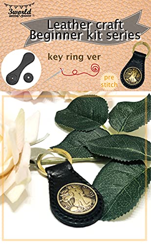 レザークラフト おためし入門キット キーホルダー 牛本革 カット 穴あけ 済み 針 糸 付属 SW1721ブラック(ウォーキングリバティ)