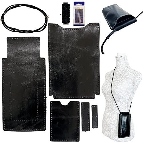 レザークラフト ミニショルダーバッグ おためし入門 キット 牛本革 カット 穴あけ 済み 針 糸 付属 SW1951ブラック