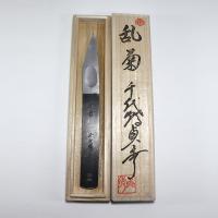 研ぎやすい良質の地金に、千代鶴貞秀師の技腕が振り下ろされ、シンプルな姿ながら、砥ぐに易く、良く切れる小刀です。