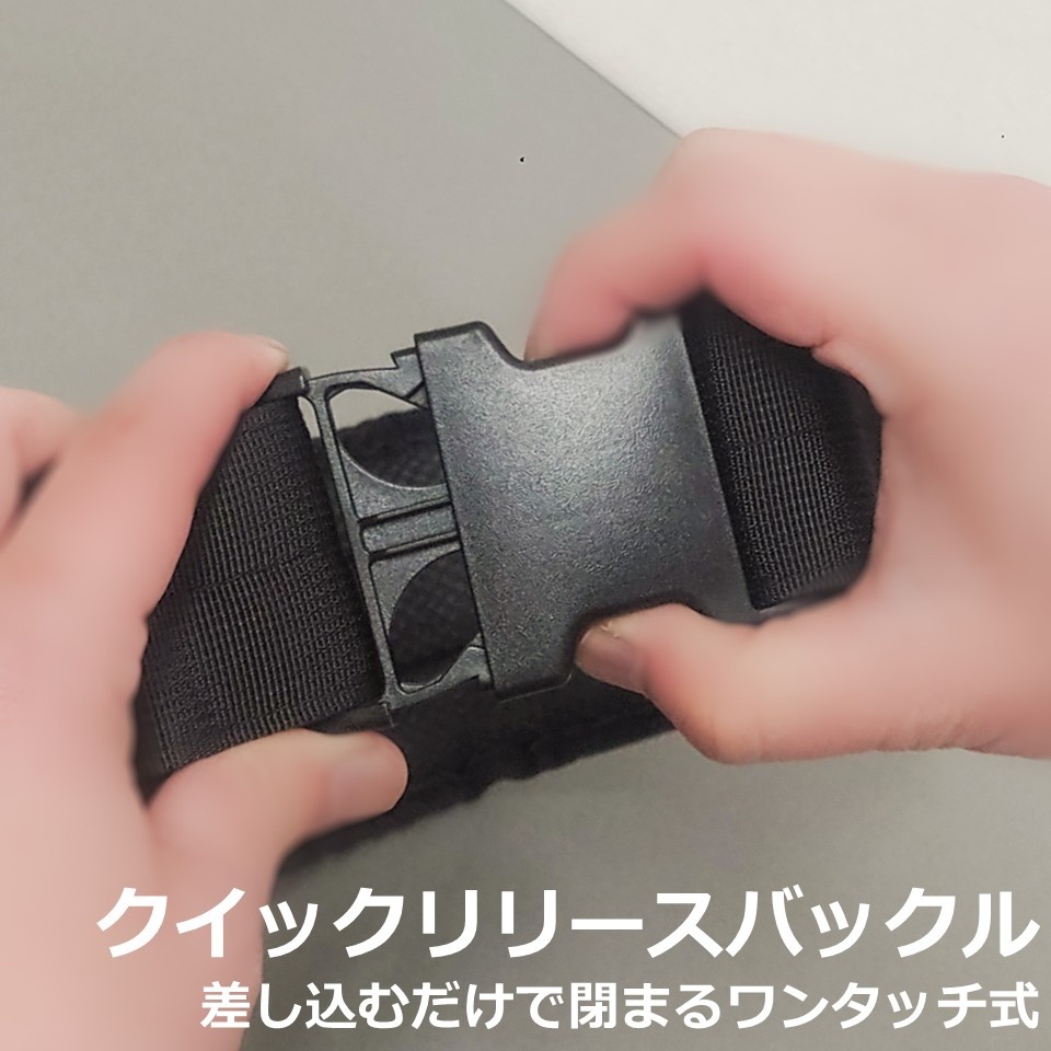 クイックリリースバックル簡単に着脱ができるボタン式ロック