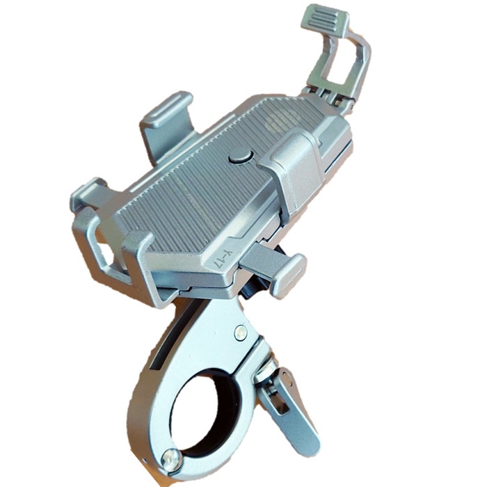 バイクスマホホルダー 四つ爪 自動ロック ハンドルマウント パイプクランプ 金属製 シルバー