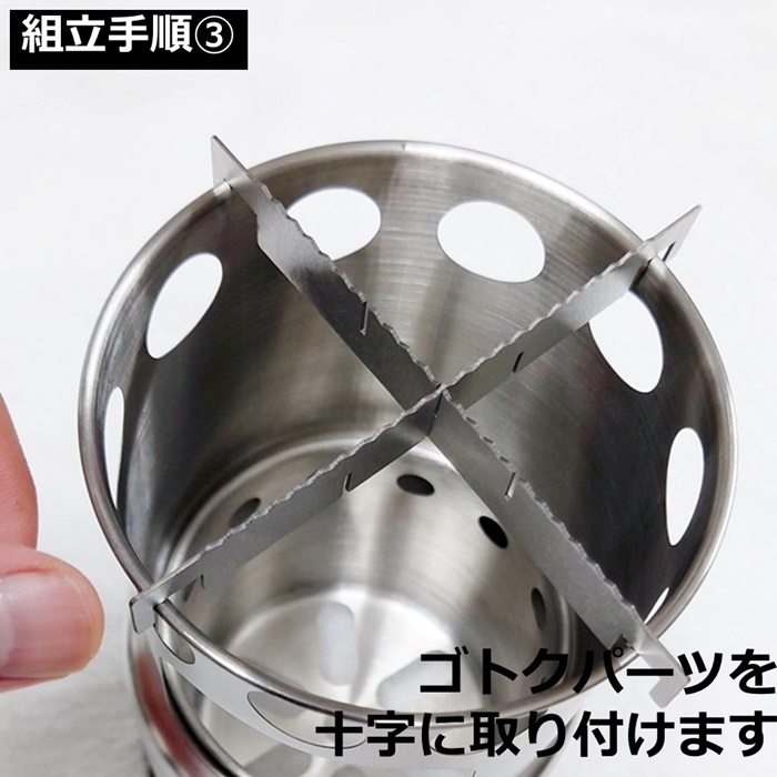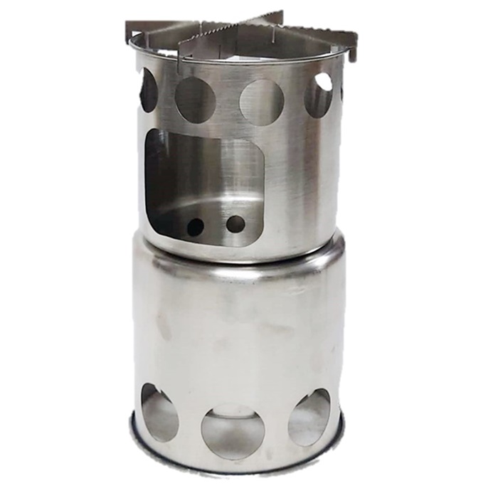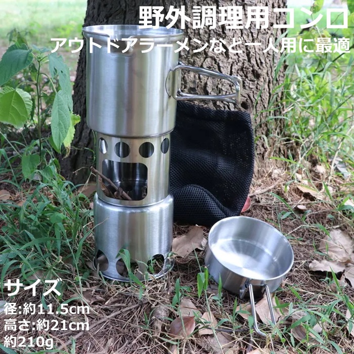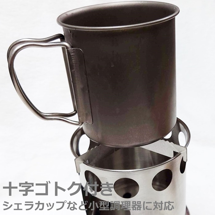 ネイチャーストーブ 円柱形 小型 焚き火台 ソロ用 組み立て式 追加投入 調理用 十字ゴトク