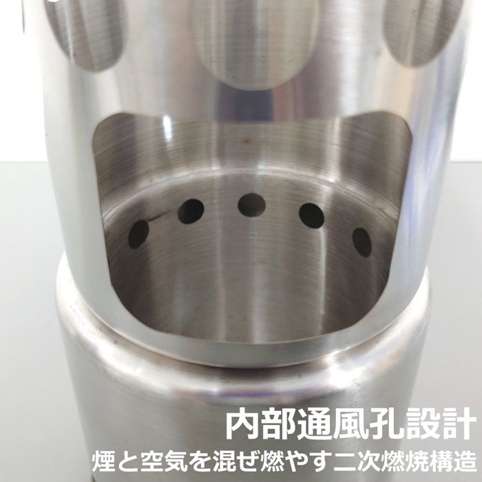 煙突効果があり,二次燃焼孔孔付きのため