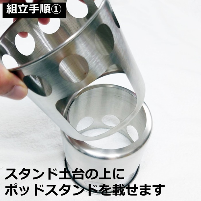 組立方法1.スタンド土台の上にポッドスタンドを載せます