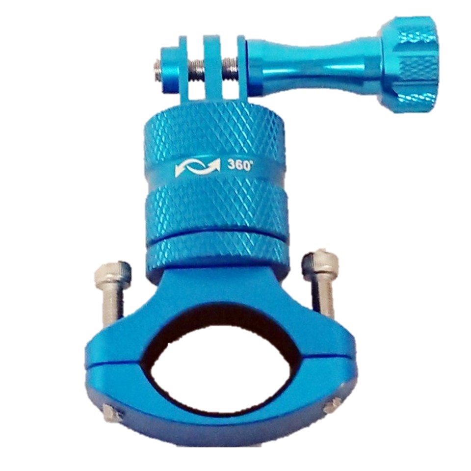 バイクカメラホルダー ゴープロアダプター2way雲台 ハンドルマウント バークランプ 金属製 ブルー