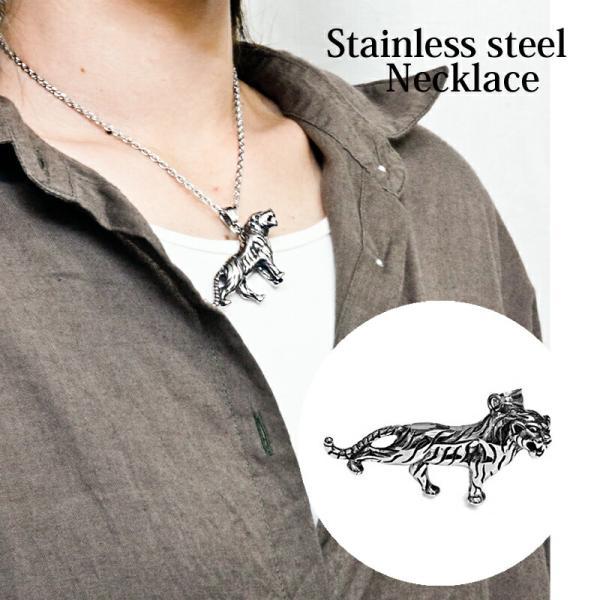 アクセサリー ステンレス タイガーネックレス / シルバー かっこいい セット チェーン付き 金属アレルギー対応 虎 ネックレス トラ ペンダントトップ