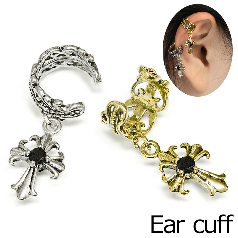 フルールドリスクロスチャーム付きイヤカフ / シルバー ゴールド イヤーカフ イヤカフ イヤリング 真鍮 クロス はさむ 金属アレルギー対応 アンティーク