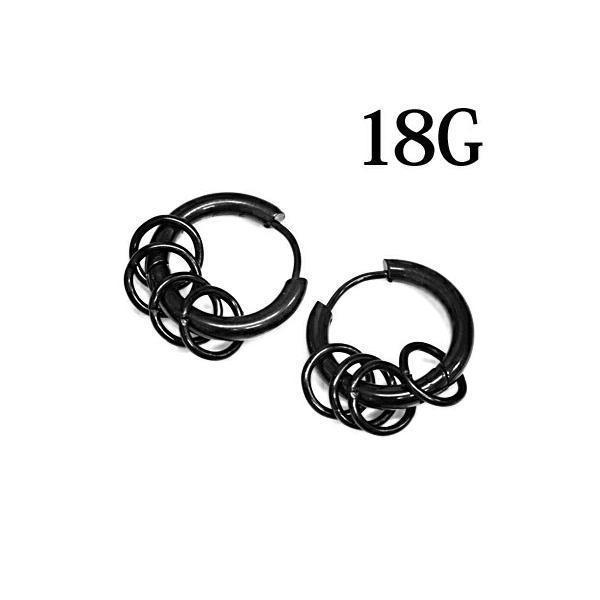 18G ペア売り リング付きフープピアス ブラック ステンレス ワンタッチ リングピアス ロブ 軟骨ピアス 輪っか 2個売り セット売り