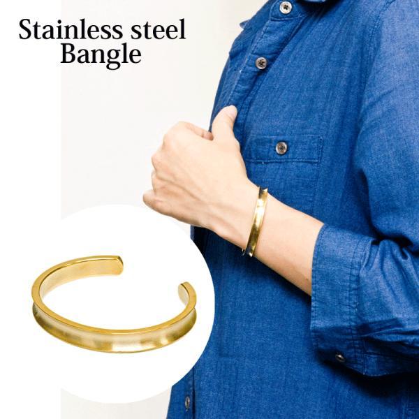【商品詳細】◆カラー:ゴールド◆バングルの幅(太さ):約7mm◆内径:約54mm◆素材:316Lサージカルステンレス+ゴールドプレーティング【備考】※ステンレスは殆どの人に問題はありませんが、人によってはアレルギーを起こす場合があります。異常を感じたときはご使用をお止めいただき専門医にご相談ください。※サウナや炎天下等の高温の場所、あるいはスキー場などの寒冷地での当商品のご使用は、火傷や凍傷の原因となる場合がありますのでご使用を避けてください。