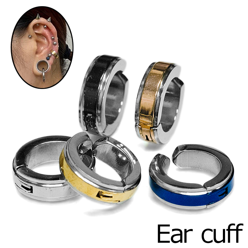 センターライン入りイヤカフ / ステンレス シルバー リング フェイクピアス 金属アレルギー対応 イヤーカフ イヤカフ 軟骨 PVD 金属アレルギー対応 1個売り