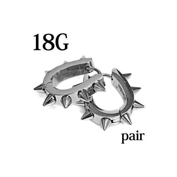 18G ペア売り スパイク付きリングピアス シルバー ステンレス ワンタッチ フープピアス