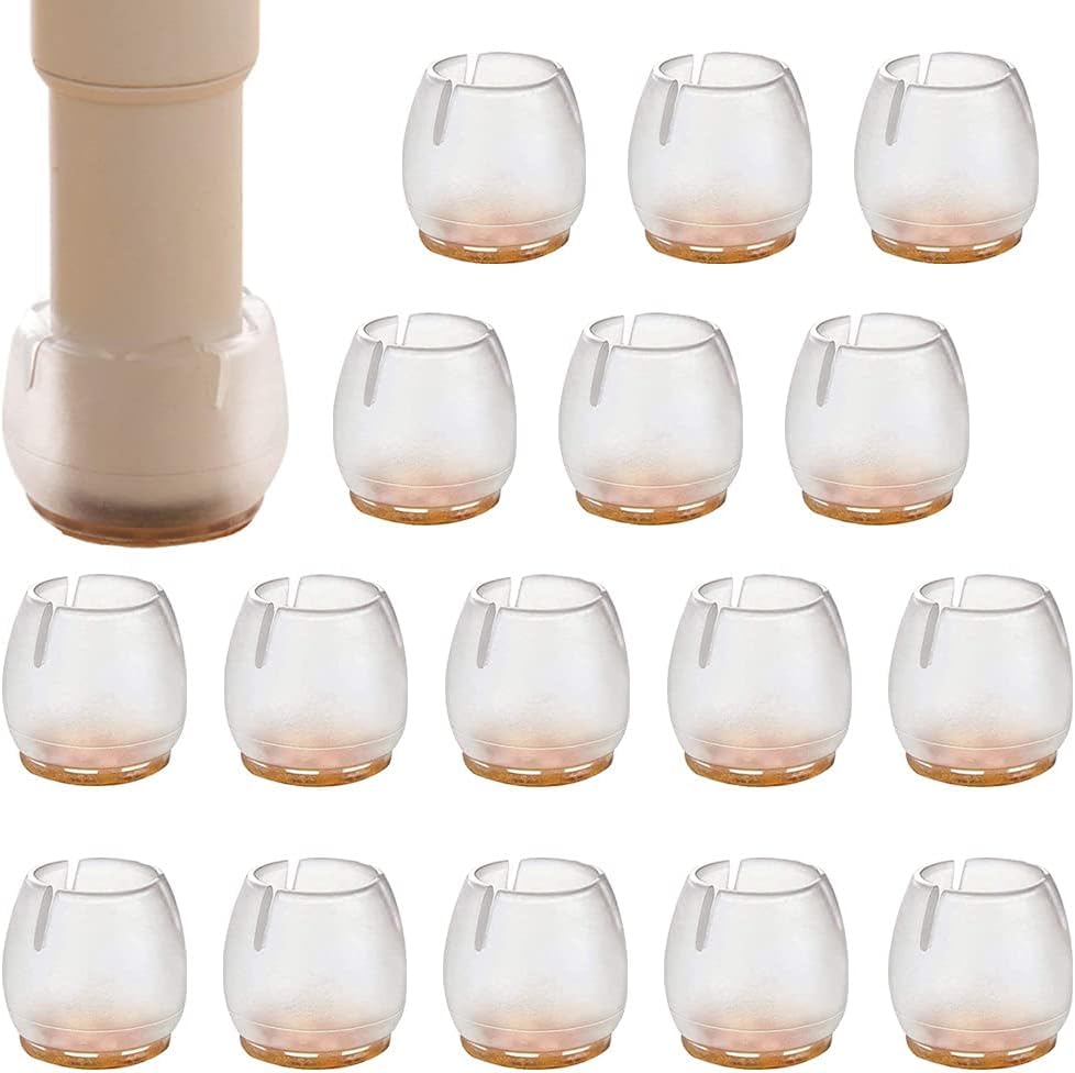 16個セット 椅子脚カバー 丸脚25〜29mm対応 シリコン製 透明タイプ 椅子脚キャップ 床キズ防止&防音 簡単装着 滑り止め フェルト付き 椅子 足カバー 騒音対策