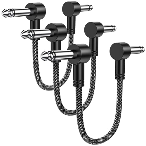 MOSWAGパッチケーブル 3パック、6インチペダルボードケーブル1/4インチギターパッチ補助ケーブル直角ギターエフェクトペダルケーブルは、エレキギター、ベースギ