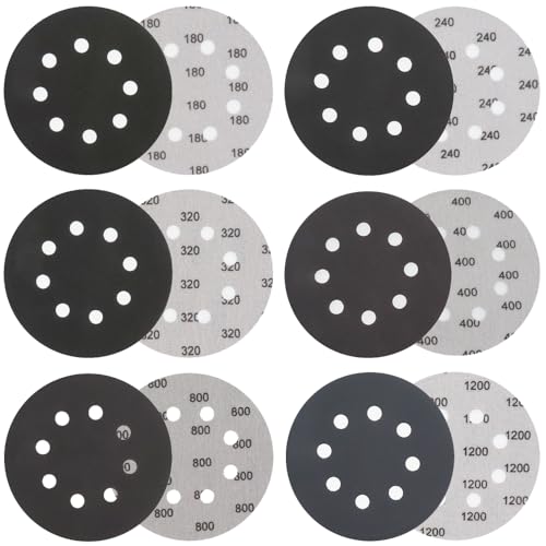 セット内容:サンドペーパー #180 #240 #320 #400 #800 #1200 6種類各5枚 合計30枚;数字が大きいほど、グリットが細かくなります。対応サイズ:直径5インチ 125mm はランダムオービタルサンダーに適しています。