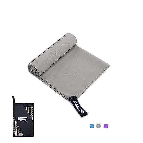 スポーツタオル 速乾タオル 高吸水 肌に優しい生地、マイクロファイバー、軽量、保管と持ち運びが簡単、収納袋 ボタン付きストラップデザイン (40*80cm, グレー)