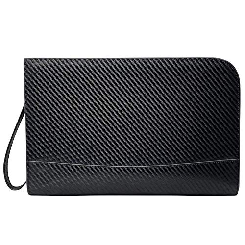 素材 外側 / 本革 牛床革 内側 / ポリエステル サイズ 約 縦18.5cm*横28.5cm 重量 約300g 仕様 マチ付オープンポケット:大*1 / マチ付オープンポケット:小*2 生地 サフィアーノレザー / カーボンレザー / スプリットレザー カラー ブラック 本革 クラッチバッグ シンプル&スタイリッシュでお洒落な雰囲気を発揮する、人気のL字ファスナータイプのクラッチバッグ。素材を生かし飽きのこない高級感のあるデザインに設計しました。特にデザイン性と機能性は徹底的にこだわり、カジュアルからビジネス、冠婚葬祭などに幅広く使って頂けます。素材の選定、なめし、裁断、裁縫など、高品質な革製品を全ての工程でこだわりを持ち、熟練の職人が一つ一つ丁寧に制作致しました。 デザイン性と機能性 *デザイン性:使い勝手のいいサイズ感と、シンプルなデザインで使い込むほどに味が出るタフな作りになっています。 *機能性:大きく開くL字ファスナーと、山折りのマチ付きなので、荷物の出し入れをスムーズに行って頂けます。インナーには、ポケットが計3つ付いていますので、小物類の収納にも便