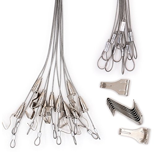 INIBUD ピクチャーレール ワイヤー フック 10本セット ステンレス コーティング 展示用 調節自在 額受 金具 (1m)