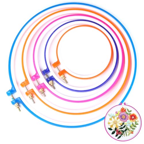 PAVIKE プラスチック刺繍フープ (5サイズ 5個セット) 刺しゅう枠 刺繍フープ 刺繍枠 円形 刺繍フープセット カラフル 刺しゅう道具 刺繍ツール 手芸用品 外径8/1