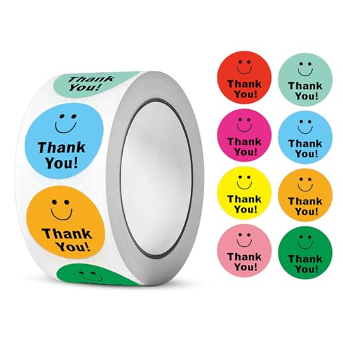 セット内容 :笑顔の「Thank you」ステッカー約500枚入り。8色セット:赤、黄、緑、青、薄紫、オレンジ、パウダー。1巻約500枚、丸いデザインで、プレゼントや手紙のラベルとして使用するのに適しています。シールには「Thank you」と書かれており、感謝の気持ちをうまく伝えることができます。