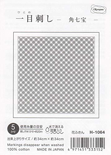 オリムパス製絲 刺し子布パック 一目刺しの花ふきん (白) 角七宝 H-1064 ※水で消える図案入り ※糸別売
