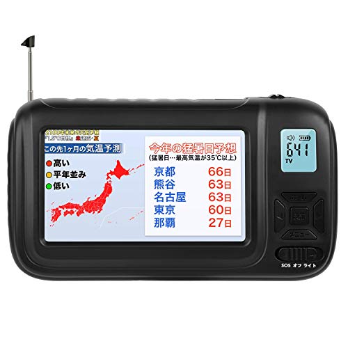 PSE認証済 携帯テレビ ポータブルテレビ ラジオ FM/AM/ワイドFM ワンセグポケットTV 手回し充電 Ledライト付き サイレン 防災グッズ 電池/USB給電対応 4.3インチ