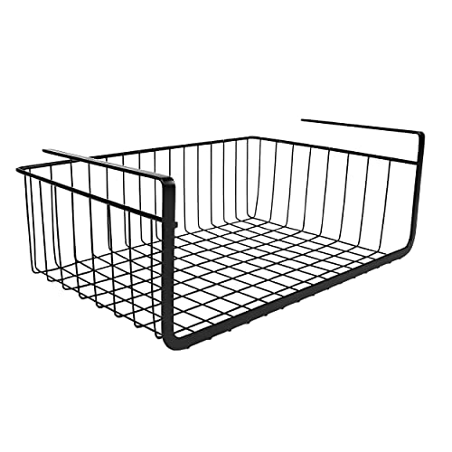 East Leaf 吊り下げ収納 吊り下げ棚 吊り戸棚 収納 カゴ バスケット スチール製 工具不要 キッチン クローゼット 40x24x14cm ブラック