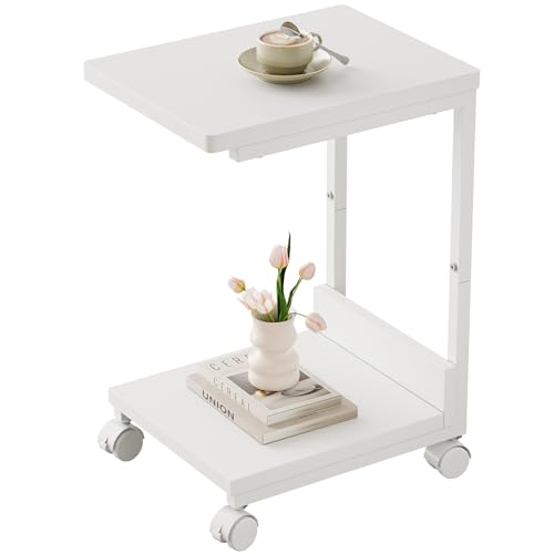 サイドテーブル キャスター付き ベッドサイドテーブル 可移動ベッドテーブル サイドワゴン コの字 テーブル 層幅37*奥行26*高さ53cm キャスター付き 白い