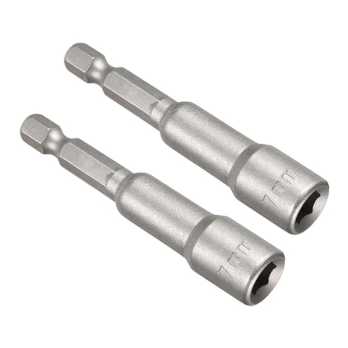ナットソケットドライバービット 1/4"六角シャンク 7mmソケット 65mm長 クロムバナジウム製 磁気ク イックチェンジ DIY作業用 2個セット