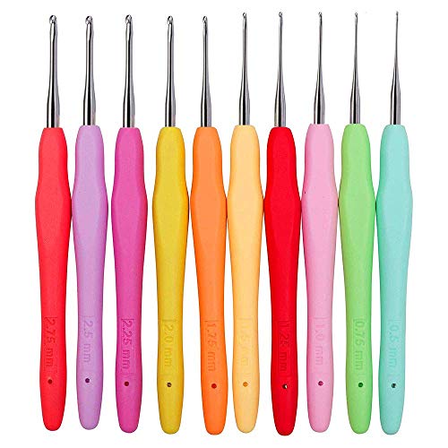 10本カギ針 0.5mm,0.75mm,1.0mm,1.25mm,1.5mm,1.75mm,2.0mm,2.25mm,2.5mm,2.75mm