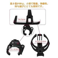 商品仕様 :自転車ボトルホルダーの全長は14.5cm、ドリンクホルダー直径は63.5〜84mm;クランプ:直径約15*43mm調節可能。重さ僅か99g、小型で軽量、持ち運びにとても便利です。