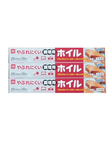 アルミホイル 厚手 25cm*10m 3本セット やぶれにくい シリコーン樹脂加工 油なしでもくっつかない 日本製 JUST COOKING