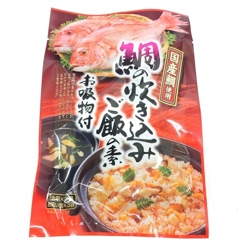原材料:炊き込みご飯の素:風味調味料(ぶどう糖、食塩、鯖節粉末、その他) 国内製造 、真鯛(国産)、乾燥人参(人参、ぶどう糖)、乾燥椎茸、食塩、デキストリン/調味料 アミノ酸等 、トレハロース、酸化防止剤(V.E)、(一部に小麦・さば・大豆・鶏肉・ゼラチンを含む) お吸い物の素:吸物風味顆粒(食塩、乳糖、魚介エキス、その他)(国内製造)、真鯛(国産)、食塩、デキストリン、乾燥みつば、乾燥柚子外皮/調味料(アミノ酸等)、トレハロース、酸化防止剤(V.E)、カラメル色素、酸味料、(一部に乳成分・小麦・さば・大豆・鶏肉を含む)