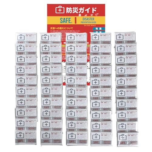 緊急災害時やスポーツ観戦時などにブランケットの代用としてご使用いただける、 サバイバルシート (エマージェンシーシート EMERGENCY SHEET) です。 コンパクトに畳まれているため、かばんや防災リュック、車の中などに常備できて、持ち運びやすく場所を取りません。 広げると 210 * 130cm になりますので、毛布のように被ったり、シートやマットの下に敷いたりと様々な使い方が可能です。 折りたたみ時は、縦、横どちらも 約11.5cm 以下のコンパクトな作りです。防災ガイドを付属しており、非常持出品チェックリストや緊急ダイヤルなど災害への備えについて 必要な情報が提供されています。