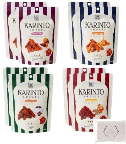 かりんとう キャラメルコーティングシリーズ 4種各2袋セット (キャラメル/コーヒー/さつまいも/蜂蜜黒糖 1袋35g) オリジナルペーパータオル(4枚重ね8枚入)