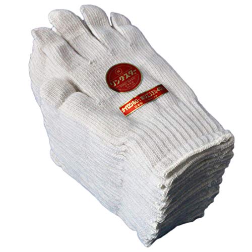 安心の日本製軍手。ナイロン・ポリエステル素材は保温性と水を弾く性能に優れるため水回り作業に最適 シワになりにくくや汚れが落ちやすいナイロン・ポリエステル素材。 摩擦に強く、産業用途で幅広くお使い頂いております。 ナイロン60%ポリエステル40% 数量:12双 サイズ:フリー 参考サイズ 全長:約24cm 手の幅;約10cm 中指の長さ:約8cm 伸縮性があるので多少前後あります。置いた状態で計測した参考サイズです。