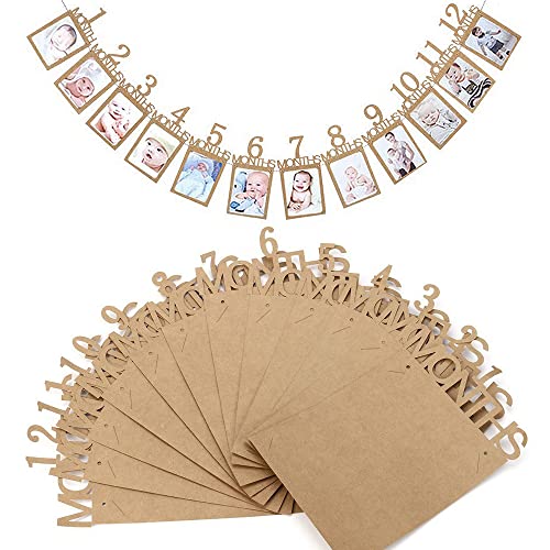 12ヶ月 誕生日 写真 ガーランド 飾り付け フォトフレーム 1歳 赤ちゃん バースディ パーティー お祝い 壁掛け 装飾 飾り フォトガーランド 写真フレーム 写真立