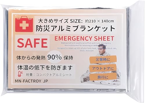 MN-FACTORY JP 日本語説明書付き:大き目 210*140* 保温シート サバイバルシート アルミシート アルミブランケット 防災 防災グッズ 緊急 災害 アウトドア 旅行
