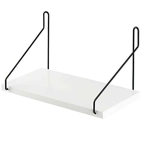 ウォールシェルフ 天然木 壁掛け棚 鉄製 ワイヤー壁棚 賃貸 飾り棚 壁面収納 無痕釘 ネジ 木製 (ホワイト, 30cm)