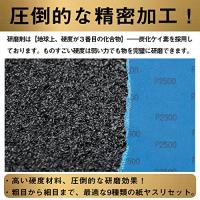 粗目から細目まで、9つの粒度*各4枚、全部で36枚が入っています。耐水ペーパーは約230 mm*93 mmです。粒度は#400、#600、#800、#1000、#1200、#1500、#2000、#2500、#3000となります。安くて上質で、ご使用に満足します。