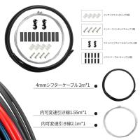 セット内容 寸法:アウターケーブル:長さ2m/直径4mm、シフトケーブル:長さ1.55m フロント /2.1m リア 、シフトケーブルエンドフェルール:10個、S字フック:2個、Oリング:4個、ワイヤーエンドキャップ:4個。