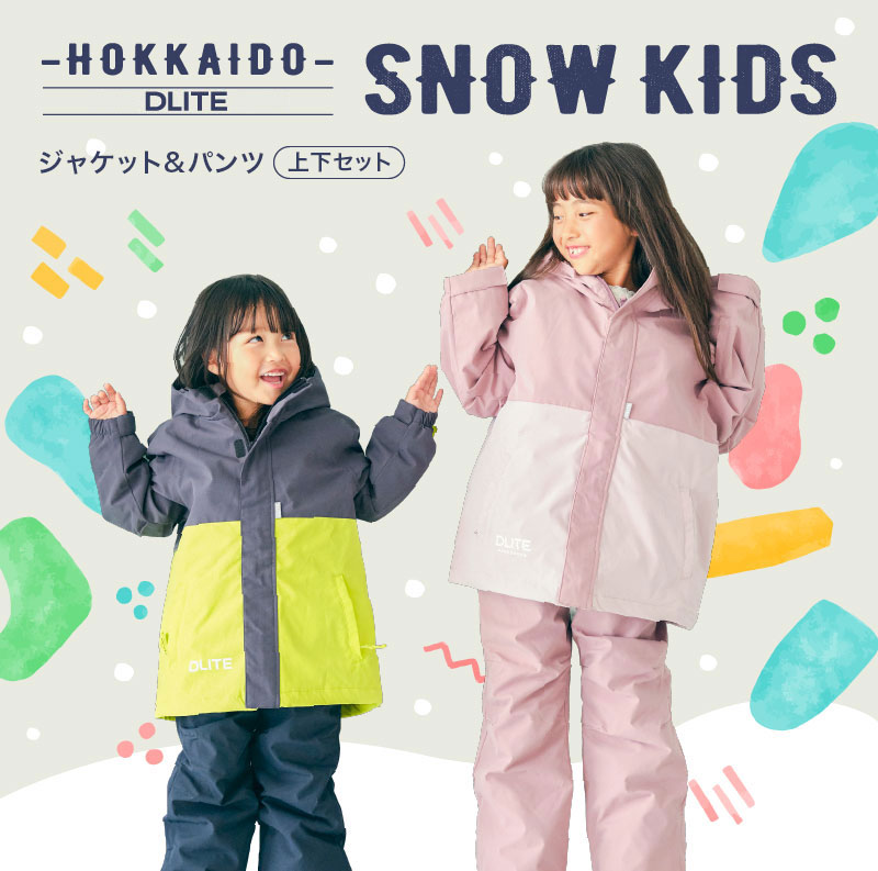 「お子さんにも喜んでもらえて、お母さんお父さんにも納得してもらえるスノーウェア」を開発するため、厳しい雪の環境で子育てをする北海道在住のお母さんお父さんにヒアリングを行い、リアルな声を反映。それがDLITEのキッズスノーウェアです。