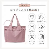 ボストンバッグ マザーズバッグ ファスナー付き 収納ポケット 手提げ 肩掛け 無地 ナイロン 大容量 撥水加工 持ち運び 大きめ 軽い かわいい 通学 通勤