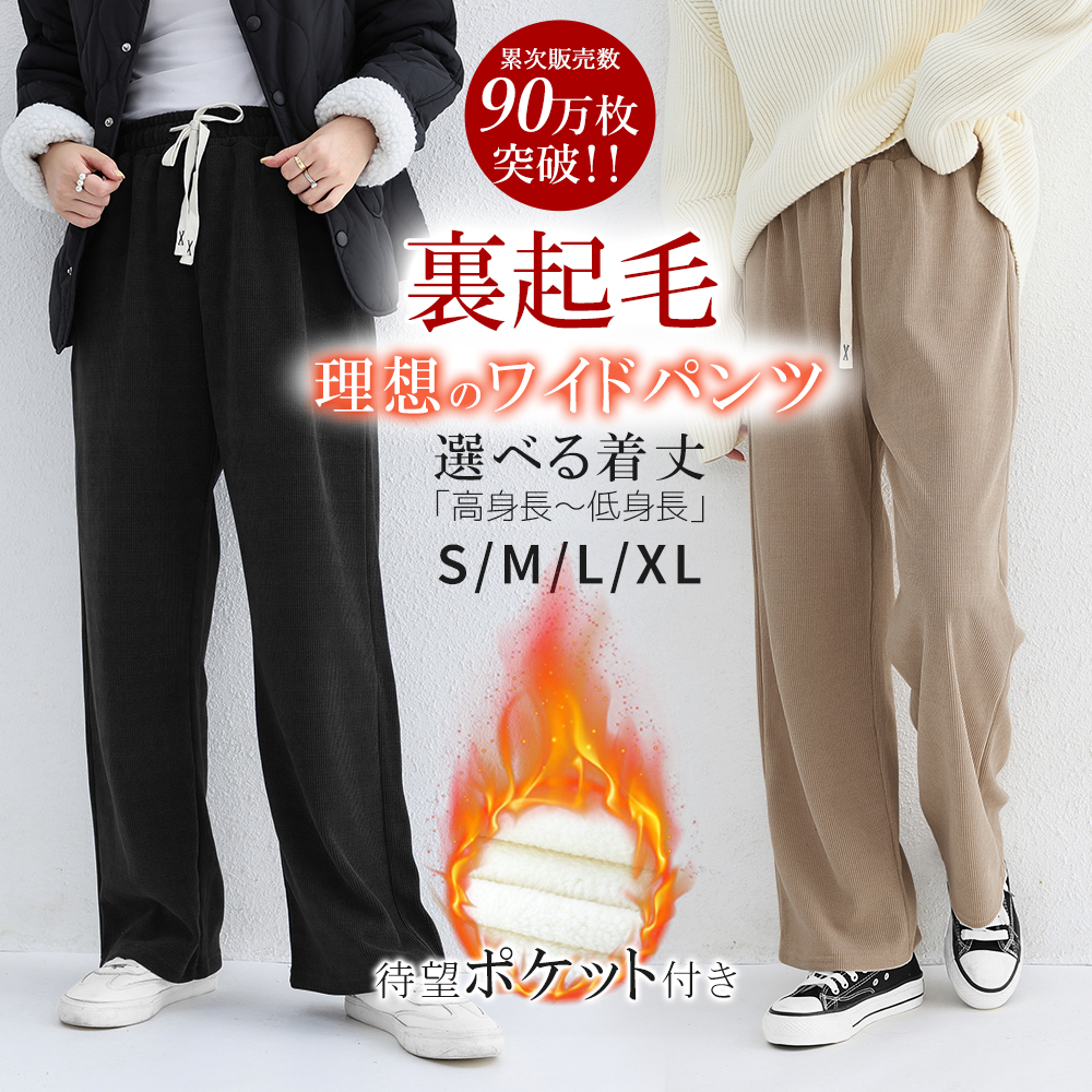 秋冬ver登場!!累計90万枚突破!! 裏起毛ワイドパンツ 丈が選べる あったか 厚手 リブ イージーパンツ 韓国ファッション レディース シンプル ゆったり 美脚