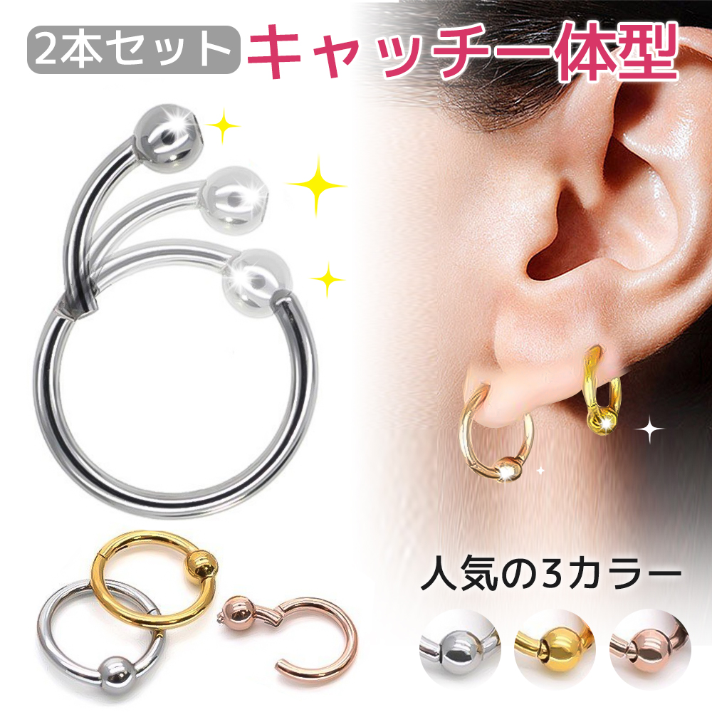 (2個セット)イヤリング ピアリング ピアス ボディピアス キャッチレス 金属アレルギー対応 ワンタッチ キャプティブビーズリング 両耳用 シンプル