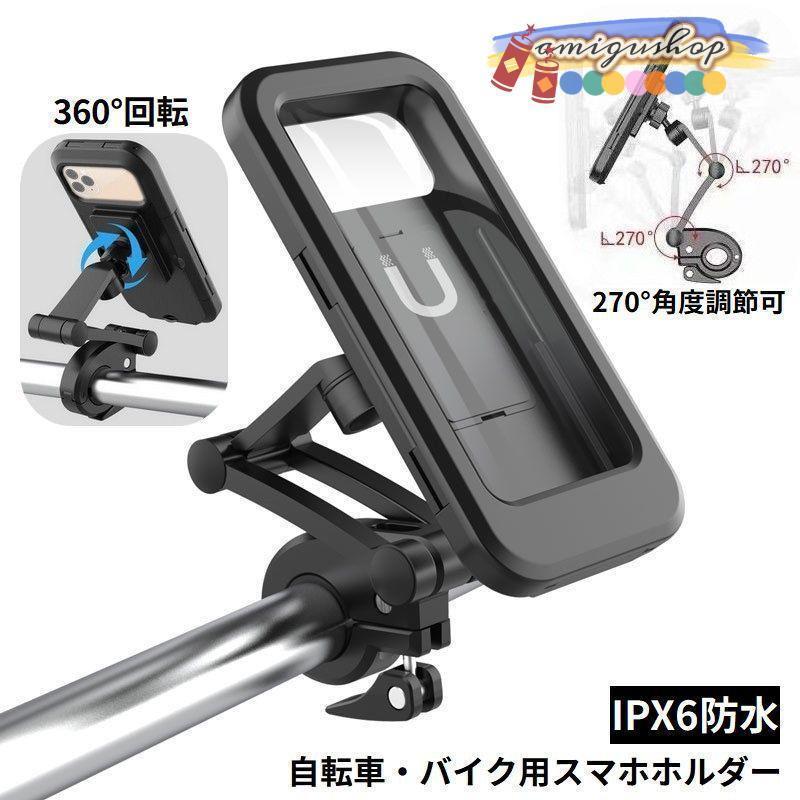 スマホホルダー 携帯ホルダー マウント スタンド ケース 自転車 ロードバイク オートバイ 防水 固定 落下防止 360度回転
